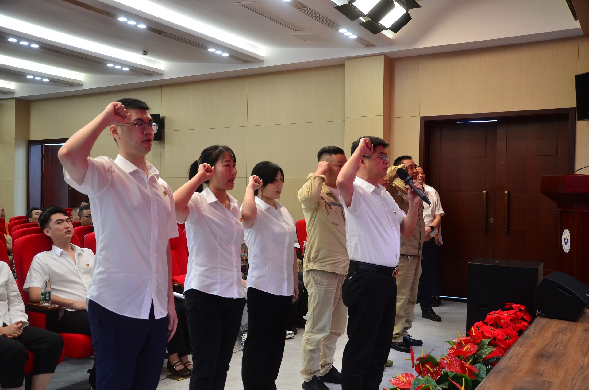 預(yù)備轉(zhuǎn)正黨員在公司黨委書記林云慶的帶領(lǐng)下莊嚴宣誓。